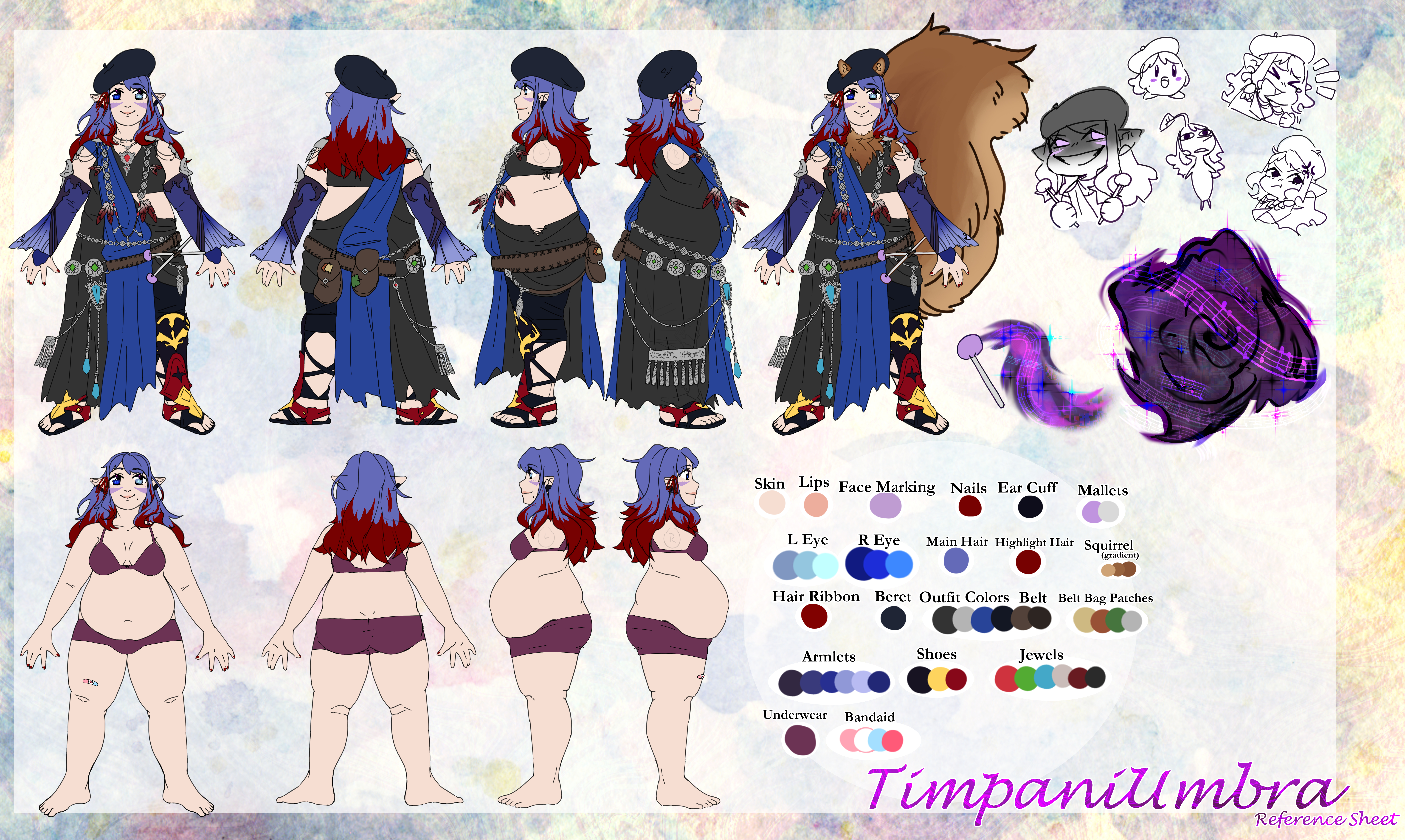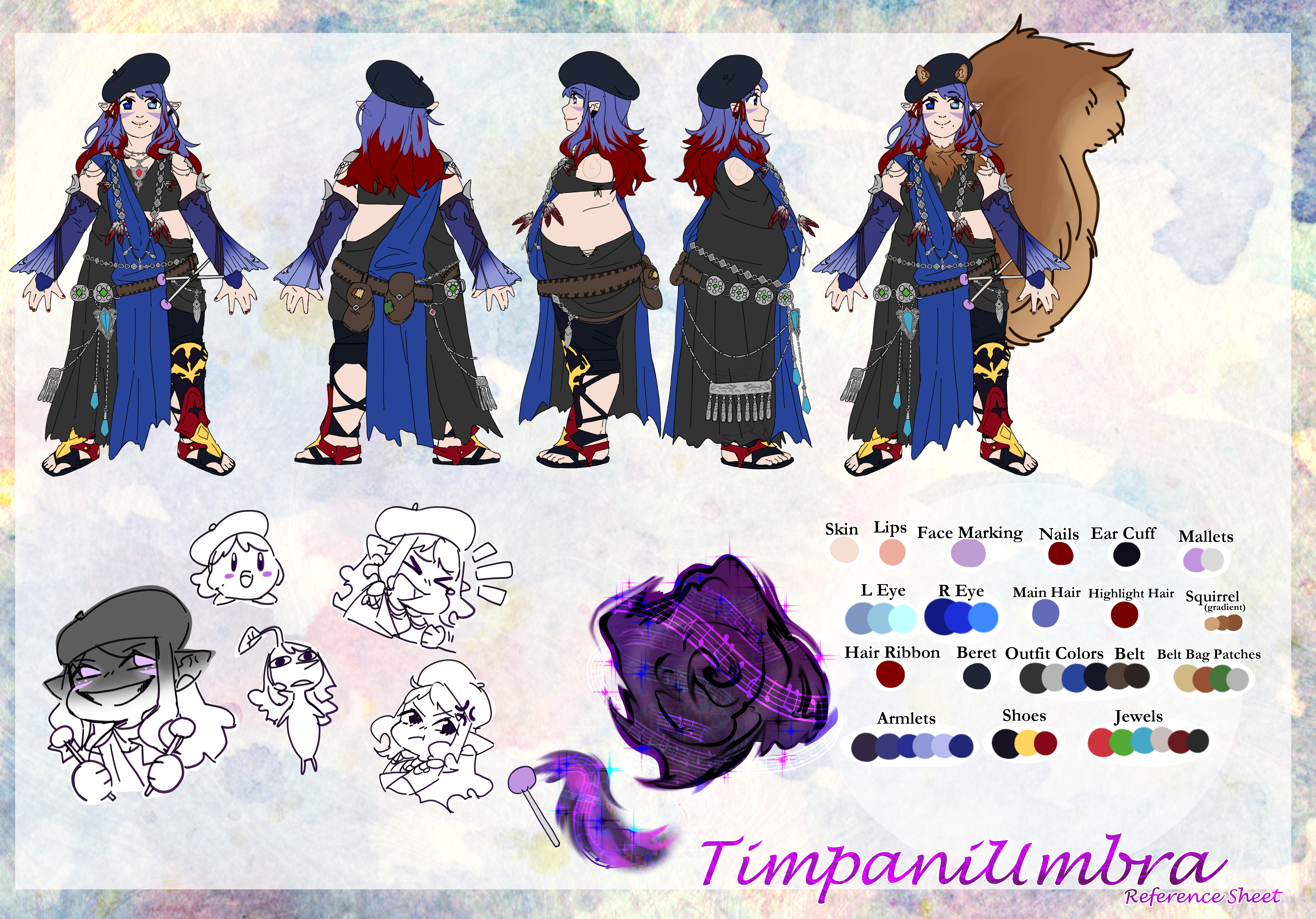 - I tend to represent this as either space-adjacent, or dark purple with music elements, or a combination of the two. The reference sheet shows this idea better.